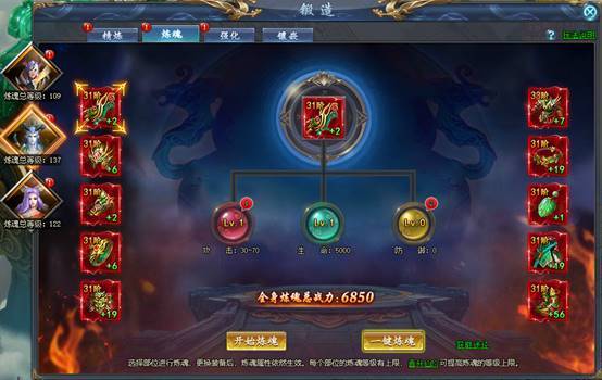 每消耗任意1个精炼将提升1级炼魂等级。晋升位列仙班金可提升炼魂等级上限。