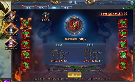 满足强化材料需求,可点击强化按钮对选中的部位进行强化,大幅度提升部位属性。