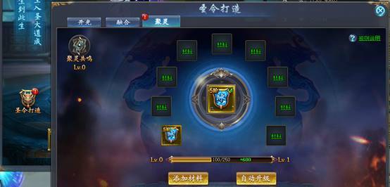 可以对已镶嵌的圣令进行开光、聚灵、融合。进一步提高圣令的属性。