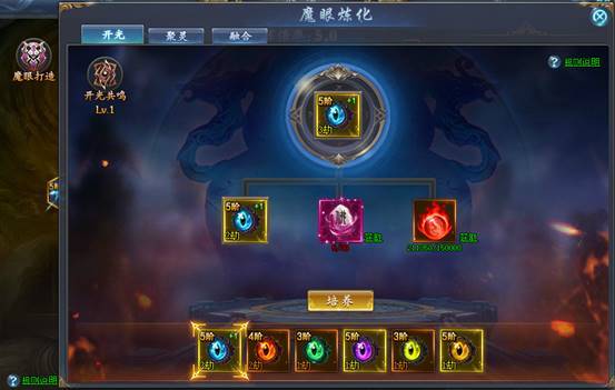 可以对已镶嵌的魔眼进行开光、聚灵、融合。进一步提高魔眼的属性。