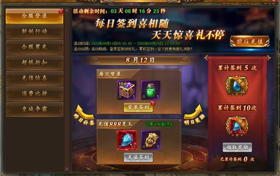 【活动内容】活动期间,累计充值达到指定金额即可领取1次对应奖励!