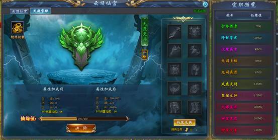 a) 消耗资源“仙缘值”提升阶数