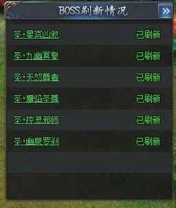 a) 玩家进入跨服地图时,主界面自动显示当前场景野外BOSS刷新状态界面