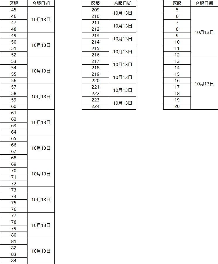 合服时间:2020年10月13日 10:00-12:00